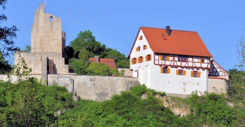 Das Zusammenspiel von mittelalterlicher Ruine und historischem Fachwerkhaus macht den besonderen Charme der Burg Derneck aus – hier verschmelzen 700 Jahre Geschichte zu einem harmonischen Ganzen.